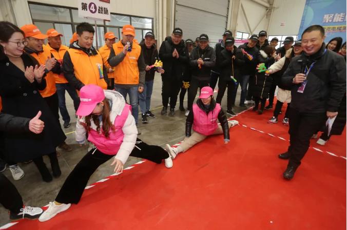 最后的比拼環(huán)節(jié),“萬能無敵隊”隊長王倩倩拼盡全力,哇,兩米,全場歡呼。不過還有更厲害的,一個男生直接劈出了兩米一的長度。