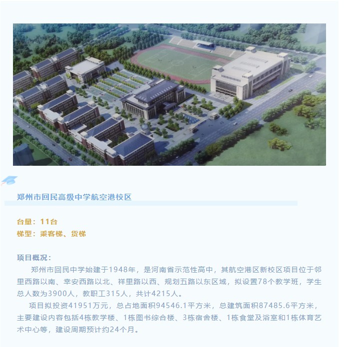 此次,虜克電梯再度協(xié)力教育資源發(fā)展,正式簽約鄭州市回民高級中學(xué),為其航空港區(qū)新校區(qū)項目提供共計11部乘客梯和貨梯,也將為教育大旗的擎起略盡綿力!