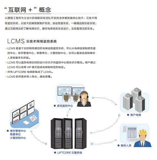 增值服務:LCTAS一鍵通遠程協(xié)助系統(tǒng) 當發(fā)生故障或者乘客需要協(xié)助時,可操作電梯轎廂內(nèi)的“一鍵通”按鈕,LCTAS為乘客提供緊急協(xié)助; 轎廂內(nèi)LCD顯示屏可發(fā)出視頻呼叫; 遠程協(xié)助系統(tǒng)能夠獲取電梯的狀態(tài),故障前最后狀態(tài)的獲取,有利于維修分析和工具準備; 系統(tǒng)擁有遠程值守功能,自動進行安全檢測,將檢測結(jié)果上報到遠程系統(tǒng),預防故障發(fā)生;