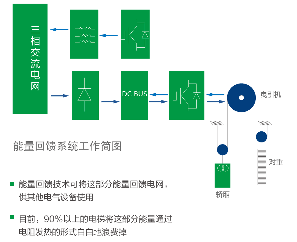 虜克電梯熟練運用能量再生原理,將節(jié)能環(huán)保的理念運用到電梯運行中,將電梯運行中的勢能有效轉(zhuǎn)化成為電能,以供周邊電器使用,減少了對電源的諧波污染,實現(xiàn)了節(jié)能到造能的跨越。